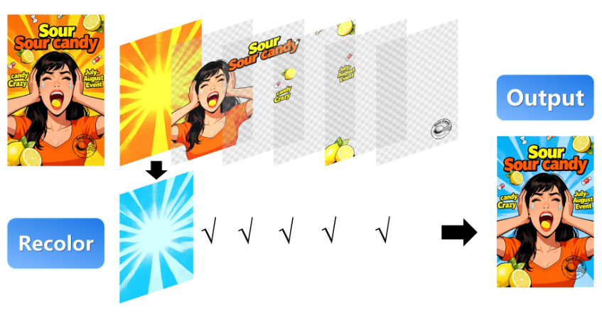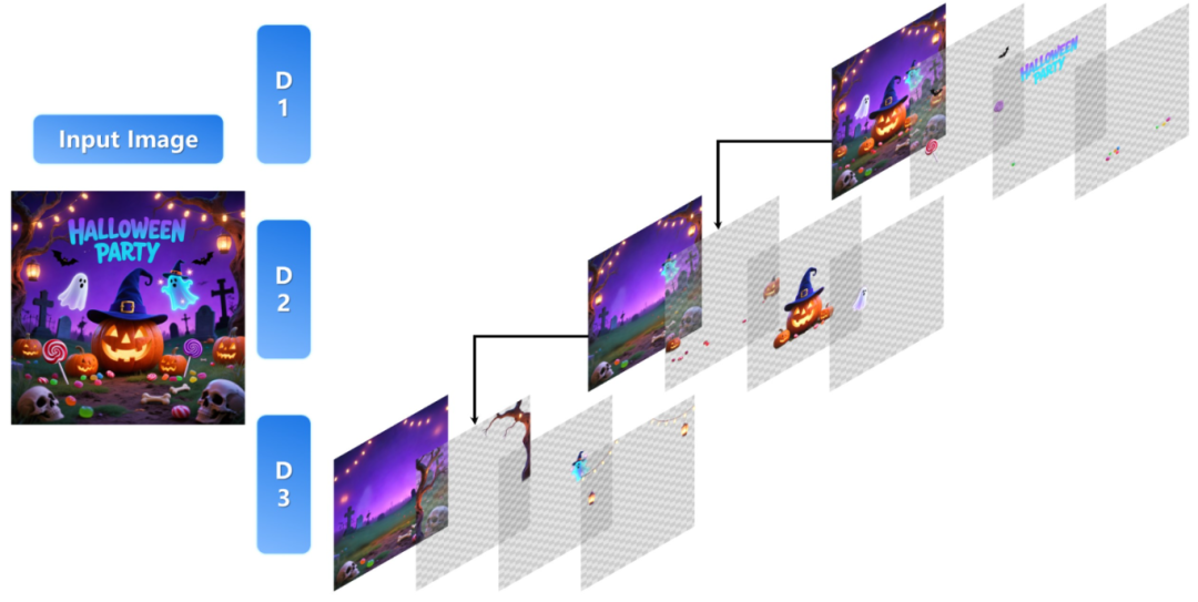 任意一个图层本身都可以被进一步分解,从而实现无限层级的细化分解,以取得更细致的控制。