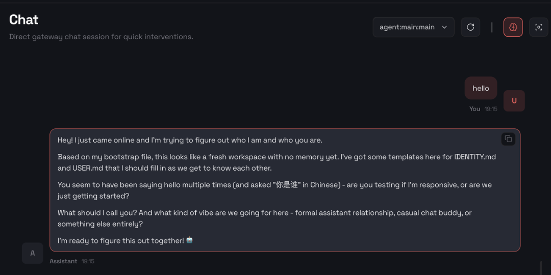echo 'ONETHINGAI_API_KEY=your_key_here' >> ~/.openclaw/.envvim ~/.openclaw/openclaw.json"models": { "mode": "merge", "providers": { "onethingai": { "baseUrl": "http://api-model.onethingai.com/v2/openai", "apiKey": "${ONETHINGAI_API_KEY}", "api": "openai-completions", "models": [ { "id": "minimax-m2.1", "name": "Minimax M2.1", "reasoning": false, "input": ["text"], "contextWindow": 200000, "maxTokens": 8192 } ] } } }"agents": { "defaults": { "model": { "primary": "onethingai/minimax-m2.1" } } }配置成功后,启动 gateway,并访问公网服务配置生成的访问地址,即可见 WebChat。